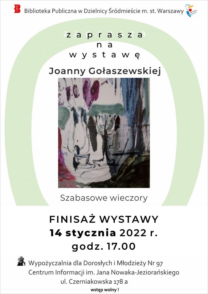 Biblioteka Publiczna w Dzielnicy Śródmieście m.st. Warszawy zaprasza do Wypożyczalni dla Dorosłych i Młodzieży nr 97 i Centrum Informacji im. Jana Nowaka-Jeziorańskiego przy ul. Czerniakowskiej 178a na wystawę Joanny Gołaszewskiej pt.: „Szabasowe wieczory”.