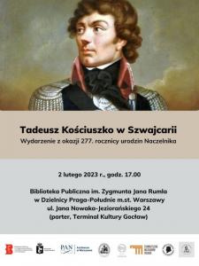Z okazji 277. rocznicy urodzin Tadeusza Kościuszki, zapraszamy do Biblioteki Publicznej im. Zygmunta Jana Rumla w Dzielnicy Praga-Południe m. st. Warszawy, mieszczącej się przy ul. Jana Nowaka-Jeziorańskiego 24 (parter Terminalu Kultury Gocław).