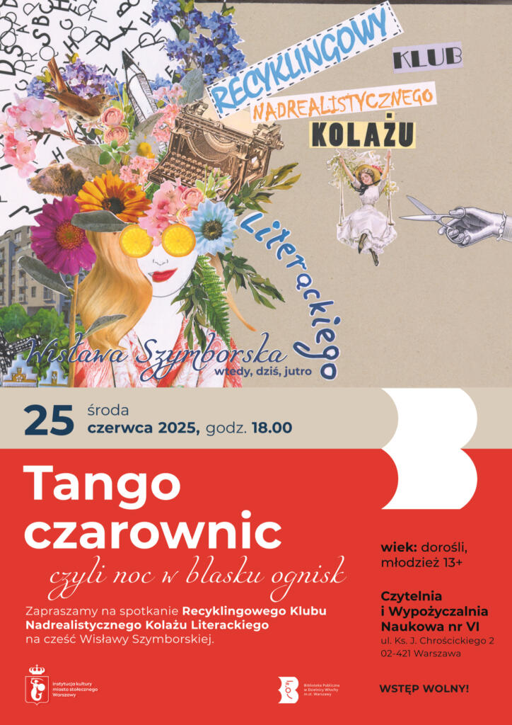 W środę 25 czerwca 2025 o godz. 18.00 Czytelnia i Wypożyczalnia Naukowa nr VI zaprasza na spotkanie Recyklingowego Klubu Nadrealistycznego Kolażu Literackiego.