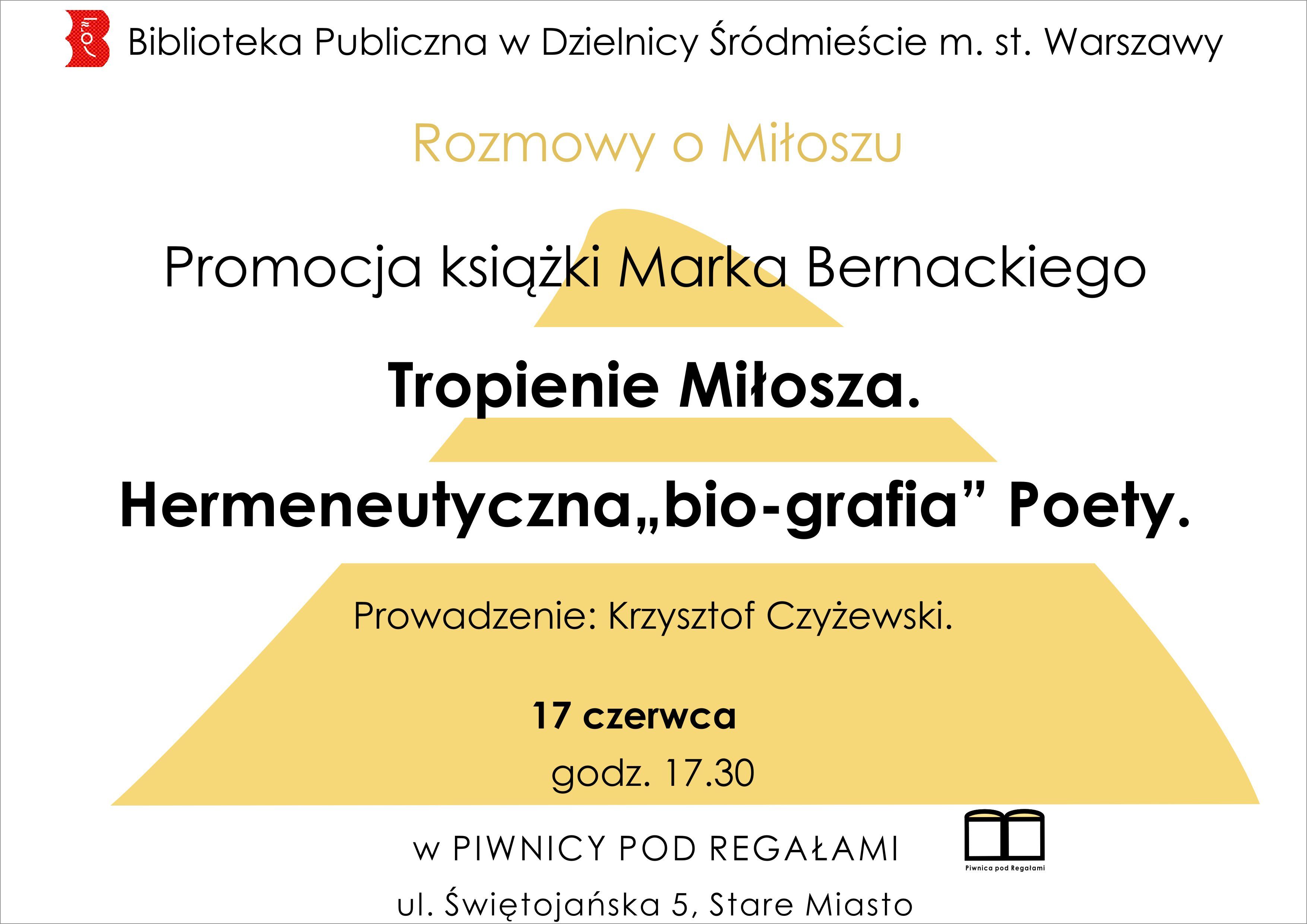 W poniedziałek 17 czerwca o godzinie 17:30, w „Piwnicy pod Regałami”, odbędzie się promocja książki Marka Bernackiego pt. „Tropienie Miłosza. Hermeneutyczna »bio-grafia« Poety”.