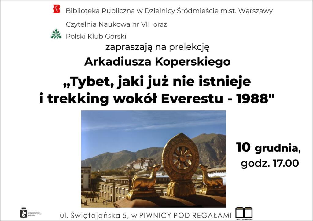 Tematem będzie „Tybet, jaki już nie istnieje i trekking wokół Everestu – 1988”.