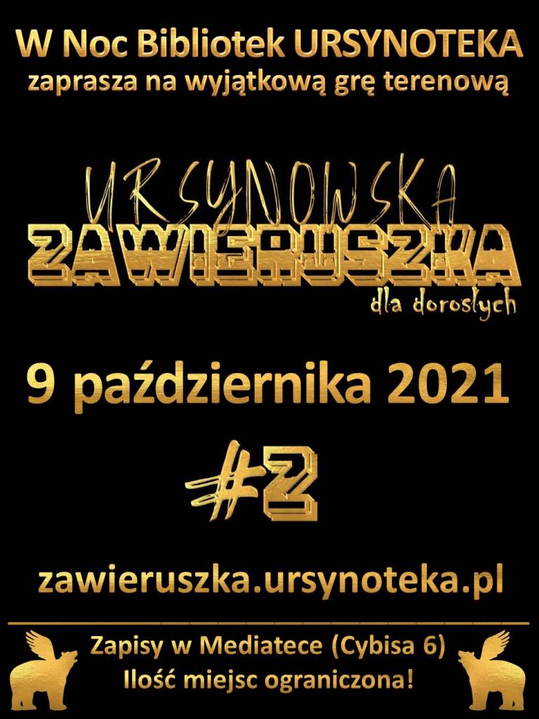 Gra Miejska przeznaczona jest dla tych, którzy lubią dobrą zabawę i ruch na świeżym powietrzu, gdyż uczestnicy będą musieli rozwiązać szereg zagadek, kierujących ich do kolejnych placówek na mapie naszej dzielnicy „Ursynowska Zawieruszka dla Dorosłych” to dobra zabawa i atrakcyjne nagrody