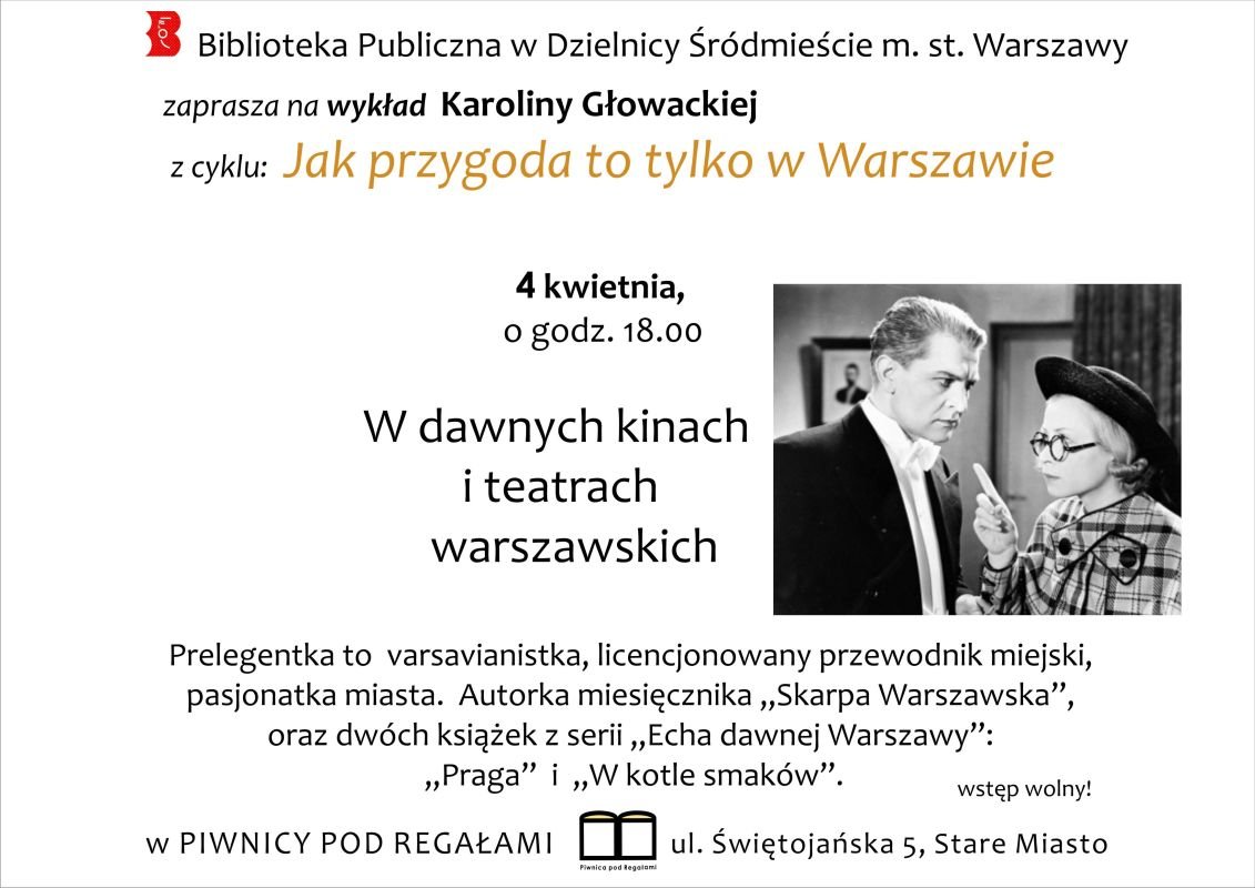 Karolina Głowacka poprowadzi wykład pt. „W dawnych kinach i teatrach warszawskich”.