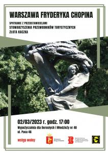 We czwartek, 2 marca o godz. 17:00, wraz z przedstawicielem Stowarzyszenia Przewodników Turystycznych „Złota Kaczka”, zabierzemy Państwa w podróż po Warszawie śladami Fryderyka Chopina. Wstęp wolny.