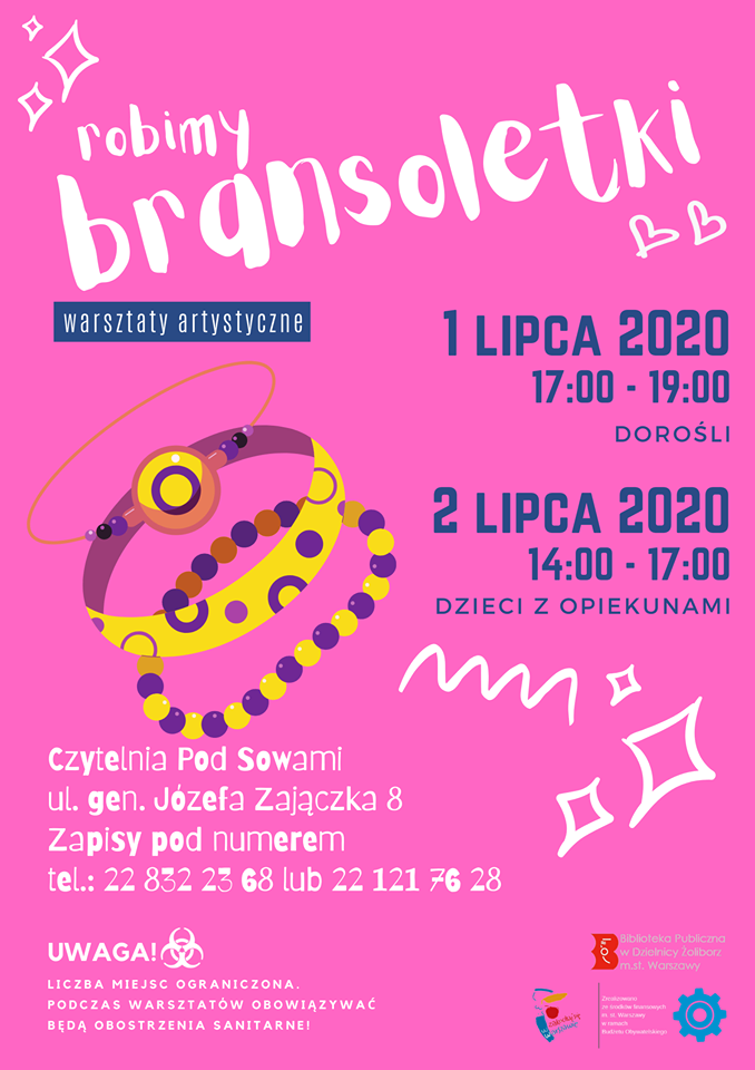 Jeśli chcecie nauczyć się samodzielnego tworzenia pięknych bransoletek, będziecie mieli do tego okazję już w najbliższym czasie. Czytelnia Naukowa nr XVI w przyjaznej przestrzeni Miejsca Aktywności Lokalnej organizuje zajęcia z tworzenia biżuterii handmade i tym razem bierze na warsztat właśnie bransoletki. Ujawnimy Wam tajemnice tworzenia eleganckich i modnych bransoletek z koralików. Zapoznamy Was z narzędziami i materiałami z których wykonacie tę efektowną ozdobę. Bezpłatnie zapewniamy materiały i instruktaż, a także środki ochrony osobistej (rękawiczki, środki dezynfekcyjne, dostępne będą także maseczki z urzędu dzielnicy). Zajęcia na zapisy odbywają się telefonicznie pod numerami 22-832-23-68, 22-121-76-28 lub za pośrednictwem maila czytelnia@bpzoliborz.pl Zachowane zostaną zasady sanitarne związane z trwającą epidemią (w warsztatach może jednocześnie uczestniczyć do 6 osób).