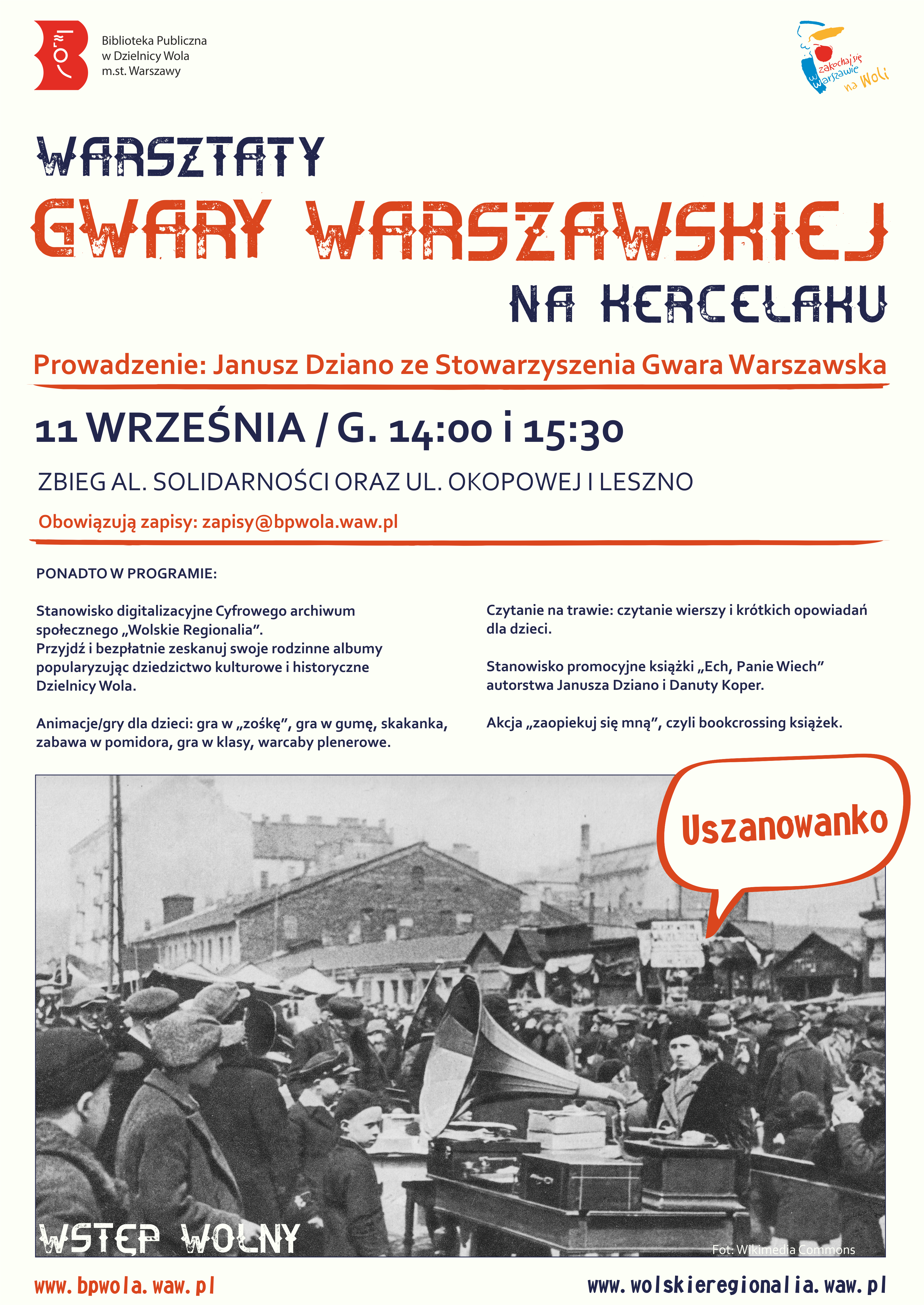 W sobotę 11 września u zbiegu al. Solidarności oraz ul. Okopowej i Leszno powstanie mini Kercelak, gdzie będzie można poczuć klimat przedwojennej Warszawy i skorzystać z licznych atrakcji jakie przygotowała na tę okazję wolska Biblioteka.