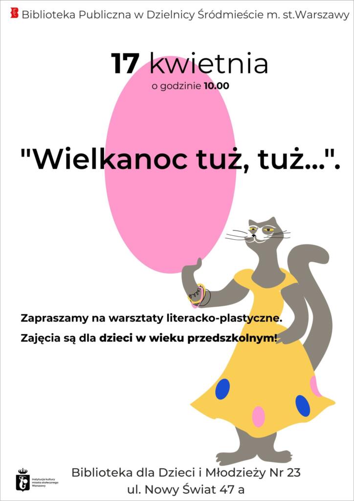Biblioteka dla Dzieci i Młodzieży Nr 23 (ul. Nowy Świat 47 a) zaprasza dzieci w wieku przedszkolnym na warsztaty literacko-plastyczne.