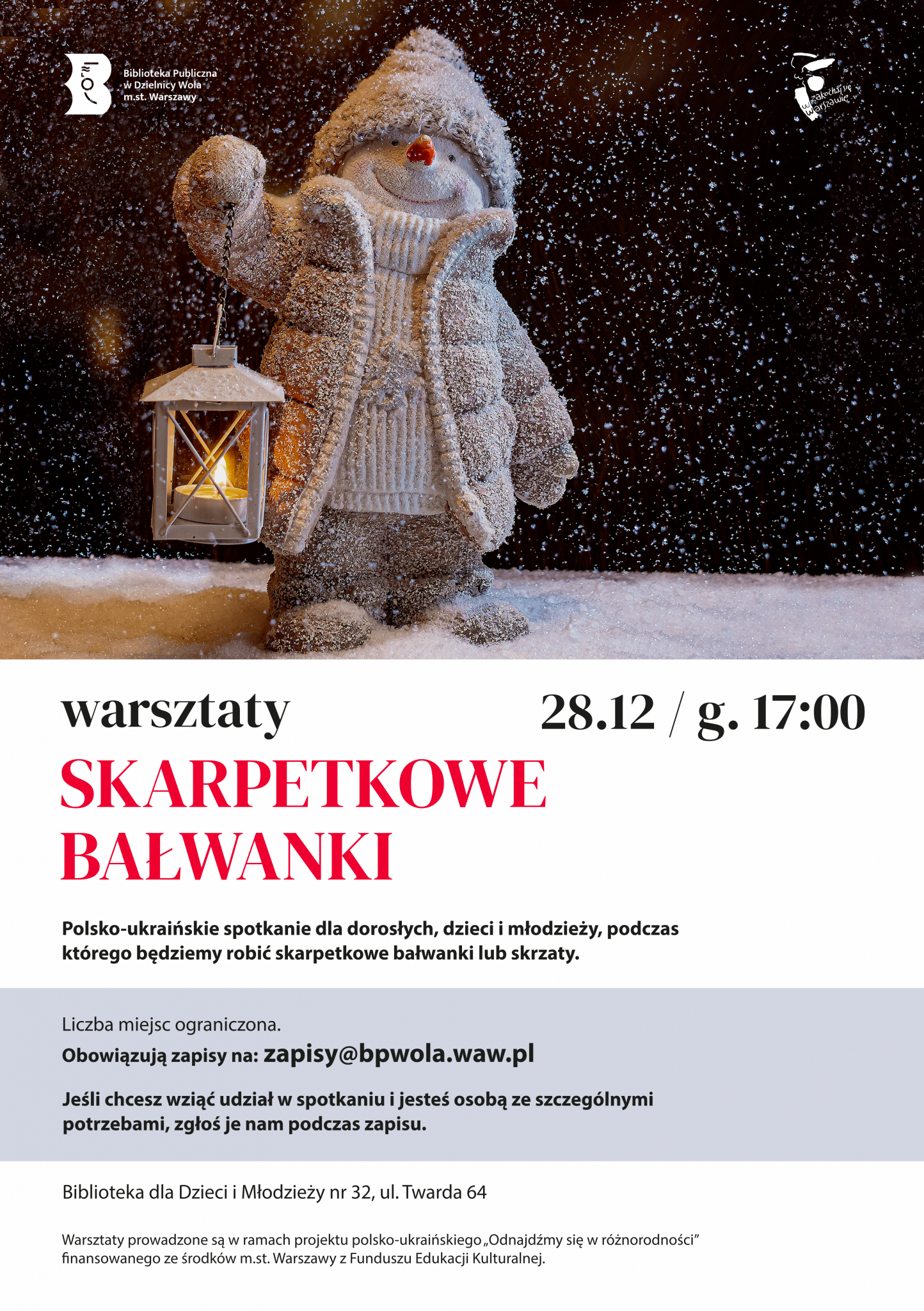 Zapraszamy na polsko-ukraińskie spotkanie dla dorosłych, dzieci i młodzieży, podczas którego będziemy robić skarpetkowe bałwanki lub skrzaty.