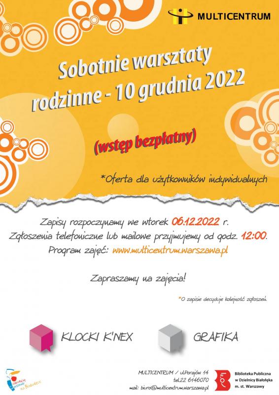 Zgłoszenia telefoniczne (tel. 22 614 60 70) lub mailowe (biuro@multicentrum.warszawa.pl)