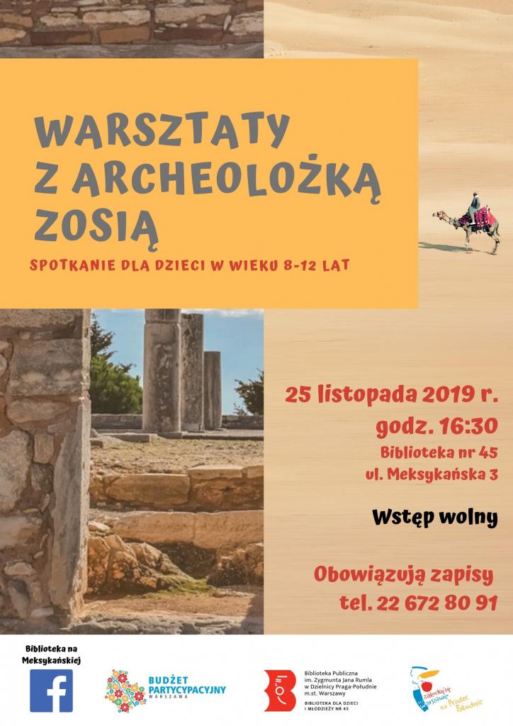 Chcesz poznać tajniki archeologii? Fascynują Cię piramidy, wykopaliska i tajemnice sprzed tysięcy lat? Zapraszamy na warsztaty z archeolożką Zosią, które odbędą się w poniedziałek, 25 listopada 2019 r. o godzinie 16:30, w Bibliotece dla Dzieci i Młodzieży nr 45, mieszczącej się przy ul. Meksykańskiej 3.