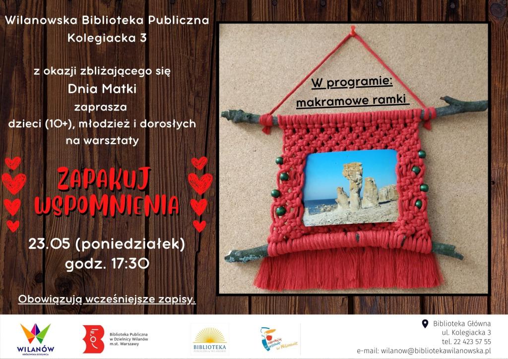 Zapisy: tel. 22 423 57 55 lub e-mail: wilanow@bibliotekawilanowska.pl