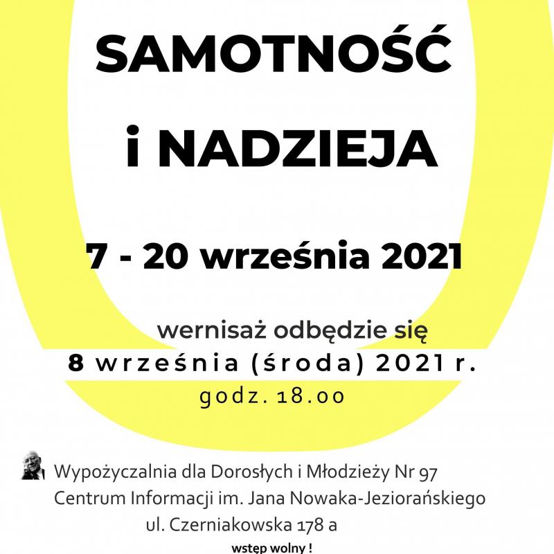 Biblioteka Publiczna w Dzielnicy Śródmieście m.st. Warszawy zaprasza do Wypożyczalni dla Dorosłych i Młodzieży nr 97 i Centrum Informacji im. Jana Nowaka-Jeziorańskiego przy ul. Czerniakowskiej 178a na wernisaż wystawy prac Aldony Jabłońskiej-Klimczak pt. „Samotność i nadzieja”.