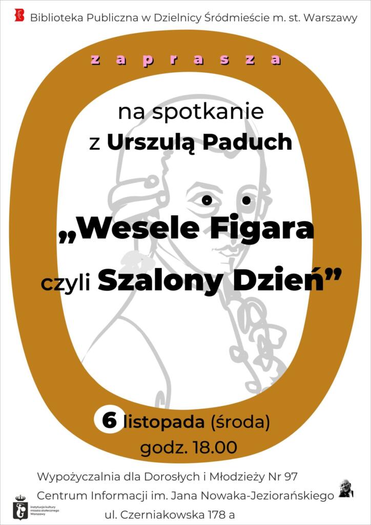 Biblioteka Publiczna w Dzielnicy Śródmieście m.st. Warszawy zaprasza na spotkanie z Urszulą Paduch pt. „Wesele Figara czyli Szalony Dzień”.