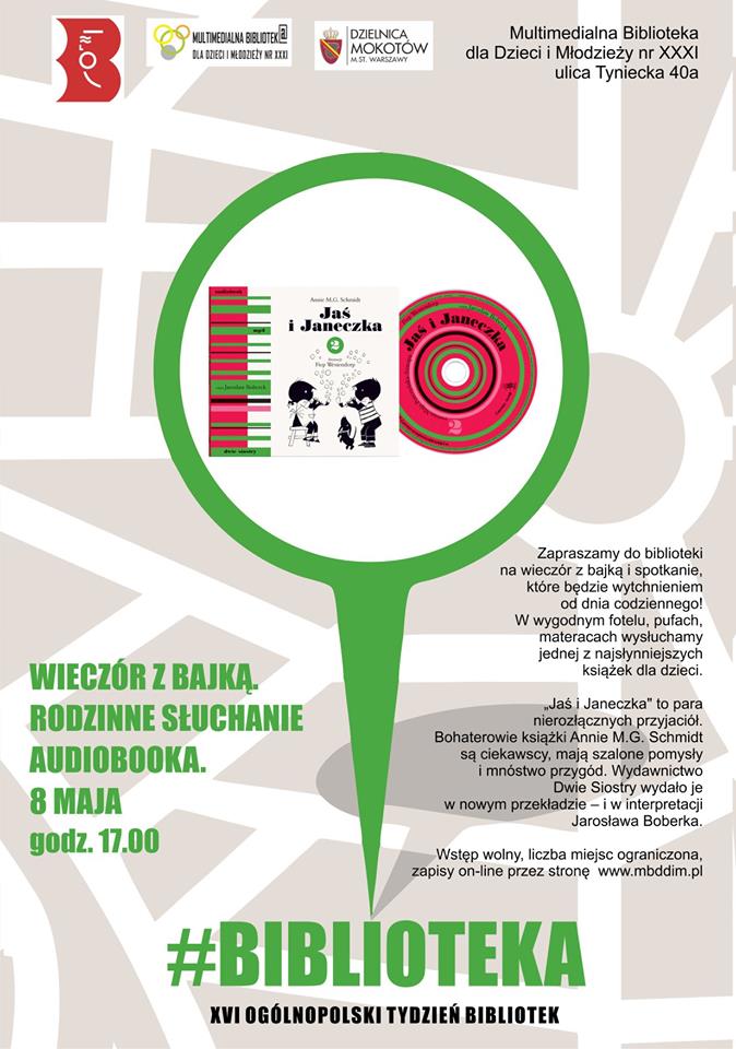 Zapraszamy 8 maja na spotkanie, które będzie wytchnieniem od codziennego dnia! W wygodnym fotelu, pufach, materacach a nawet podłodze wysłuchamy bajki „Jaś i Janeczka” wydawnictwa Dwie Siostry, audiobooka w interpretacji Jarosława Boberka.