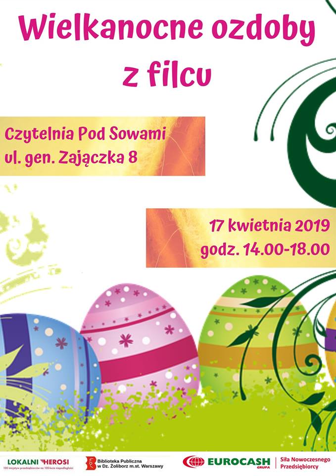 Okazją mogą być warsztaty „Wielkanocne ozdoby z filcu” na które zapraszamy do Czytelni Pod Sowami. Pod okiem instruktorów zapewne powstaną piękne ozdoby, tóre upiększą świąteczny koszyczek.