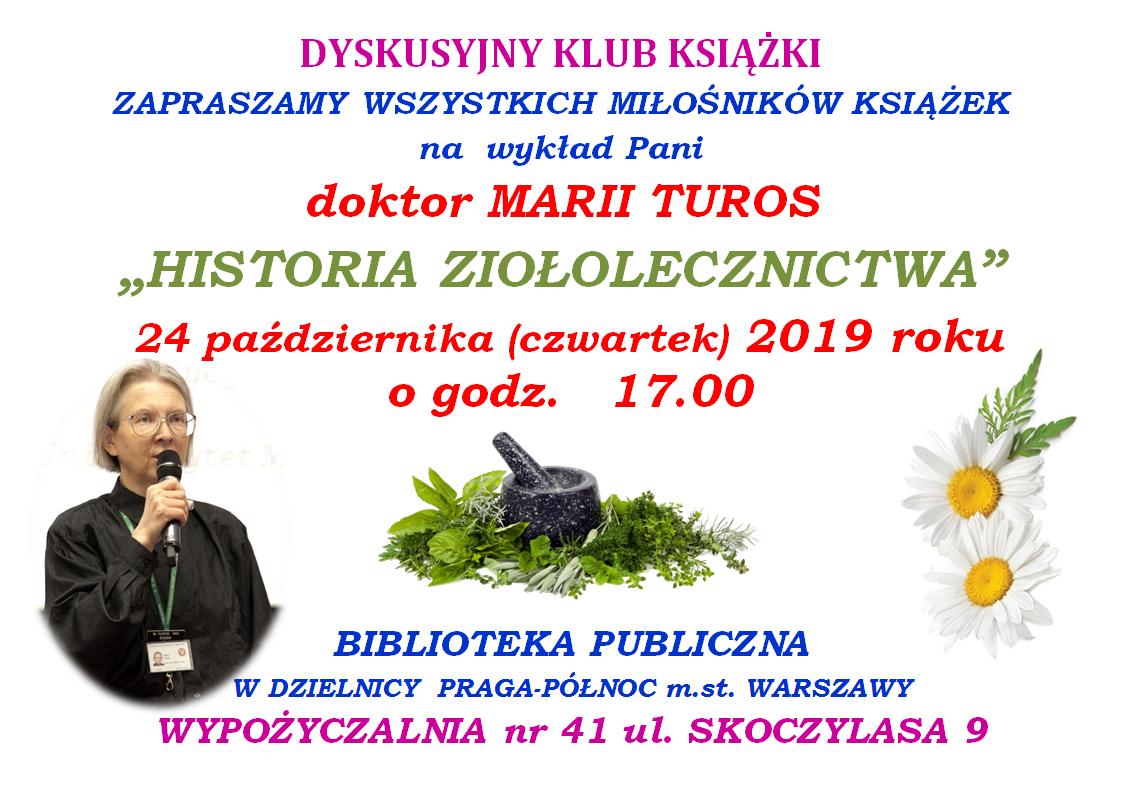 Dyskusyjny klub książki zaprasza wszystkich miłośników książek na wykład dr Marii Turos nt. „Historia ziołolecznictwa”.