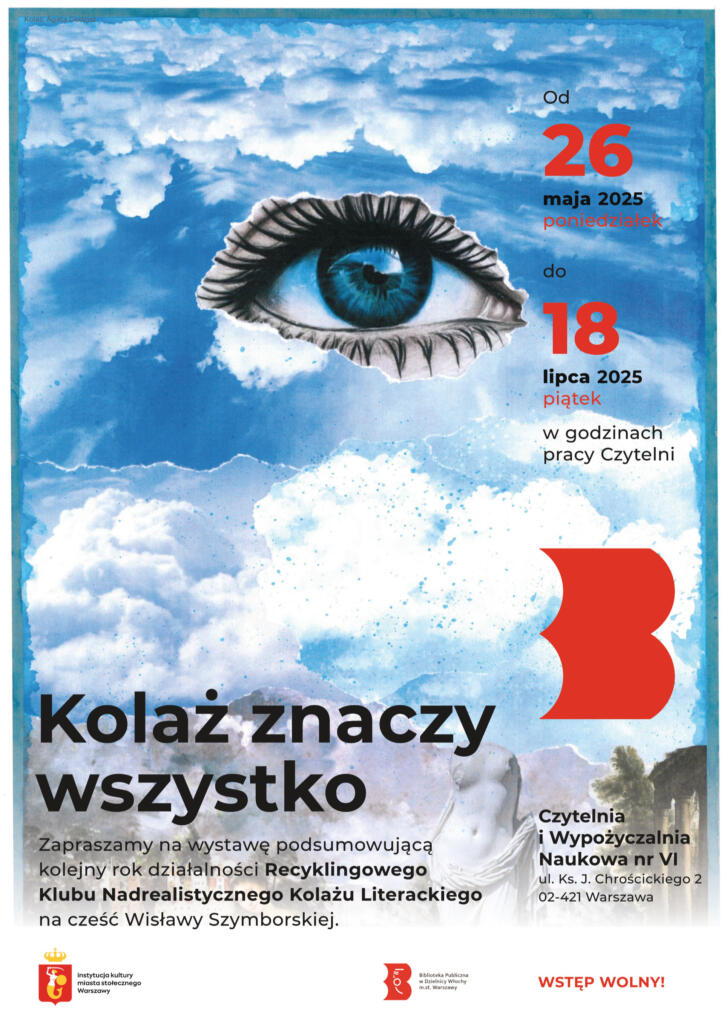 Zapraszamy do zapoznania się z wystawą podsumowującą kolejny rok działalności Recyklingowego Klubu Nadrealistycznego Kolażu Literackiego działającego w Czytelni i Wypożyczalni Naukowej nr VI – aktywny link.