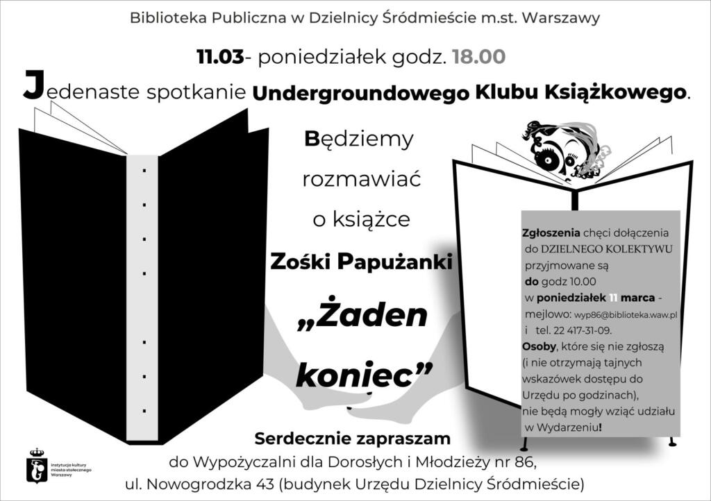 11 marca o godzinie 18:00 na jedenaste spotkanie Undergroundowego Klubu Książkowego.