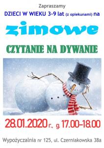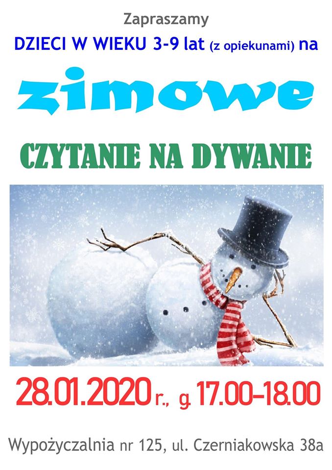 Dla naszych milusińskich czytelników cykl „Czytanie na Dywanie” 28 stycznia 2020, godzina 17:00-18:00.