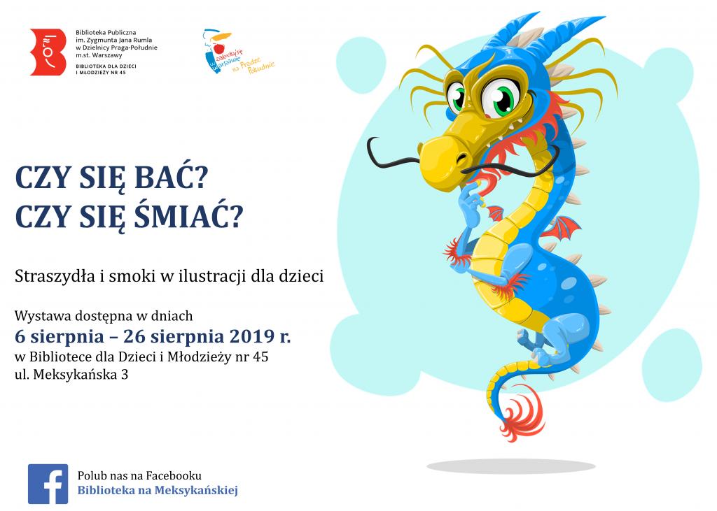 Biblioteka dla Dzieci i Młodzieży nr 45, mieszcząca się przy ul. Meksykańskiej 3 zaprasza na wystawę ilustracji z książek dla dzieci, których bohaterami są straszydła, smoki i inne stwory. Raz budzą grozę, innym razem uśmiech na twarzy czytelnika. Jednak, jak to zwykle bywa, po bliższym poznaniu dowiadujemy się, że są one całkowicie niegroźne. Wszystko, tak naprawdę, zależy od naszej czytelniczej wyobraźni. Na wystawie obejrzeć można klasyczne pozycje literatury dla dzieci, m.in. „Tam gdzie żyją dzikie stwory”, autorstwa Maurice`a Sendaka, „Muminki” Tove Jansson, czy „Gruffalo” Julii Donaldson. Obejrzeć można także ilustracje z naszego rodzimego literackiego podwórka, czyli „Duszki, stworki i potworki”, autorstwa Doroty Gellner, „Pora na potwora” małżeństwa Mizielińskich.
