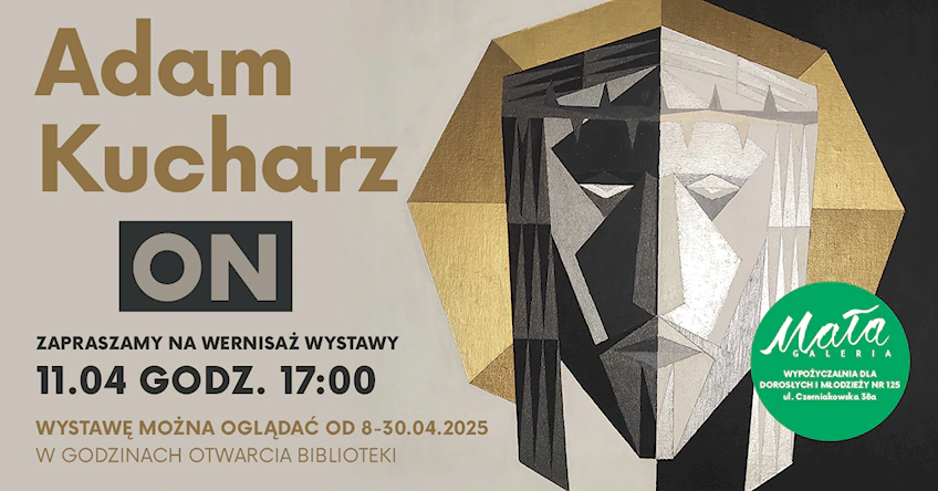 Mała Galeria w Wypożyczalni dla Dorosłych i Młodzieży nr 125 (ul. Czerniakowska 38a) zaprasza na indywidualną wystawę prac malarskich Adama Kucharza pt. „On”.