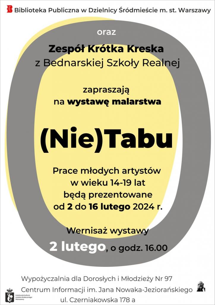 Biblioteka Publiczna w Dzielnicy Śródmieście m.st. Warszawy oraz Zespół Krótka Kreska z Bednarskiej Szkoły Realnej zapraszają na wystawę malarstwa pt. „(Nie)Tabu”.