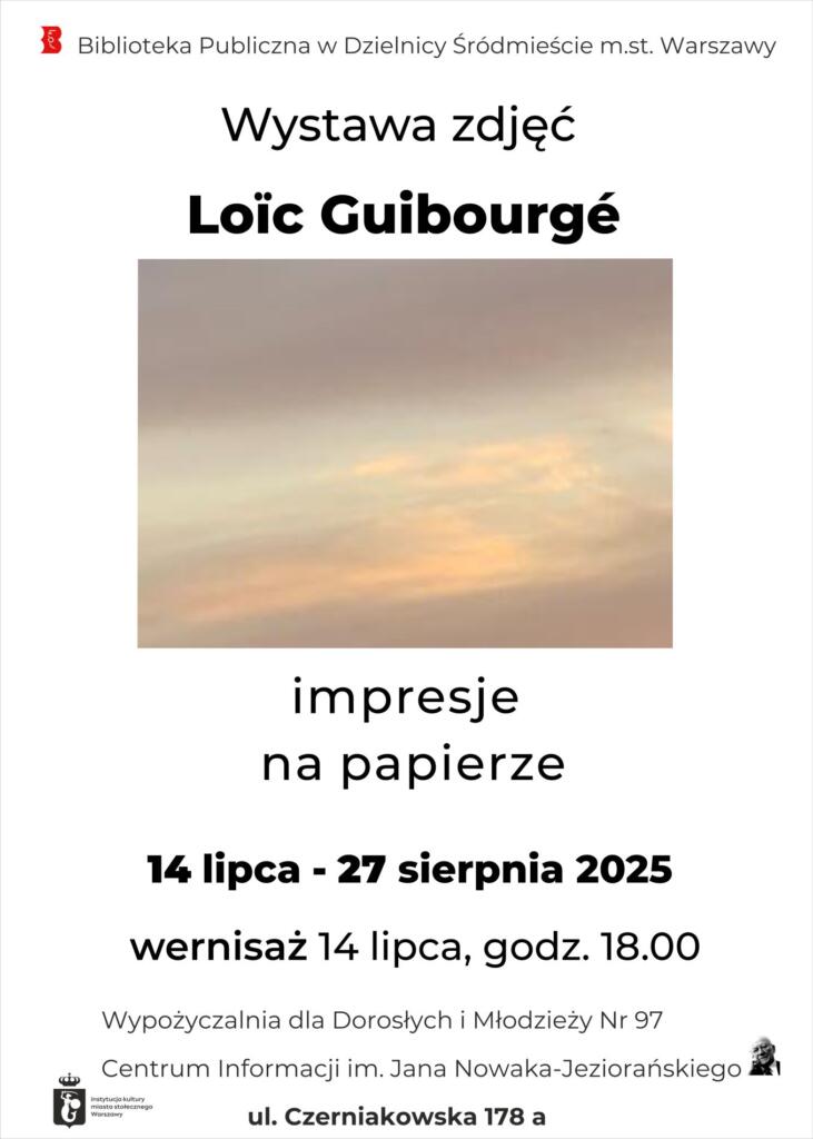 Biblioteka Publiczna w Dzielnicy Śródmieście m.st. Warszawy zaprasza na wystawę zdjęć Loic Guibourge pt. „Impresje na papierze”.