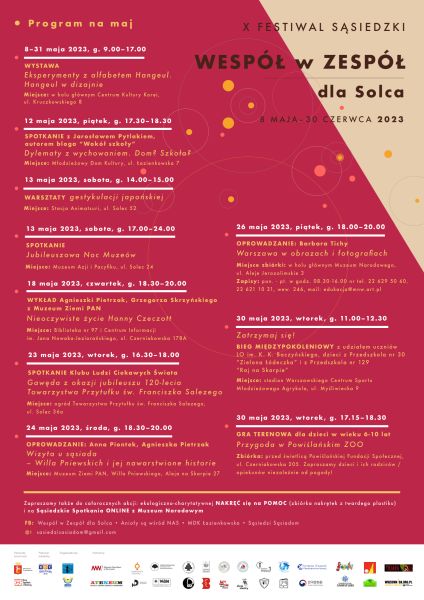 W ramach X edycji Festiwalu Sąsiedzkiego Wespół w Zespół dla Solca w dniach 08 maja–30 czerwca 2023 zapraszamy