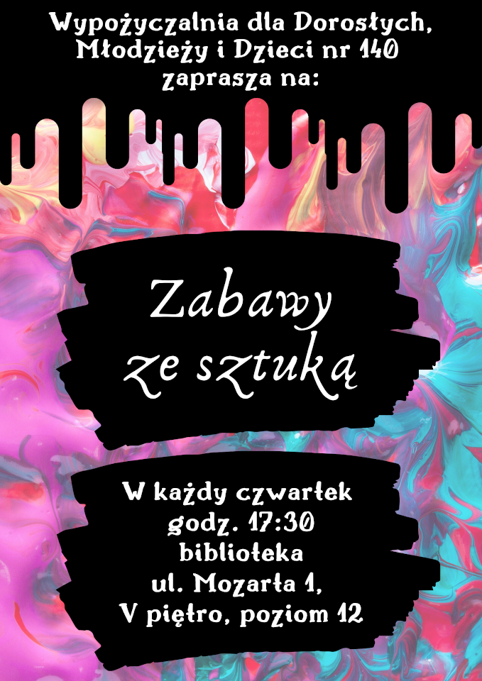 Zapraszamy w każdy czwartek o godzinie 17:30, Wypożyczalnia 140, ul. Mozarta 1.