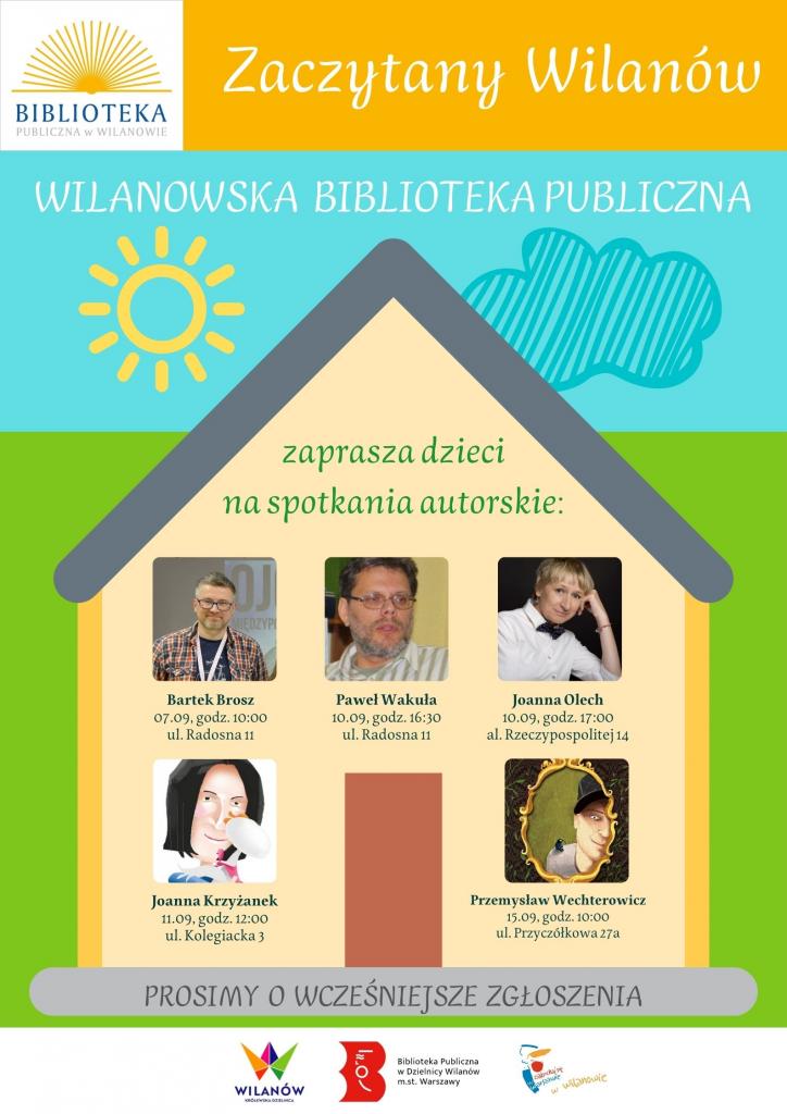 10 września o godzinie 17.00 w filii w Miasteczku Wilanów (al. Rzeczypospolitej 14) wraz z Joanną Olech autorką „Dynastii Miziołków”, która podbiła serca młodych czytelników i nadal porywa humorem i wspaniałą fabułą, zagłębimy się w świat bohaterów, ich radości, smutków, problemów i sukcesów. Dowiemy się także, co trzeba zrobić, by zostać pisarzem.