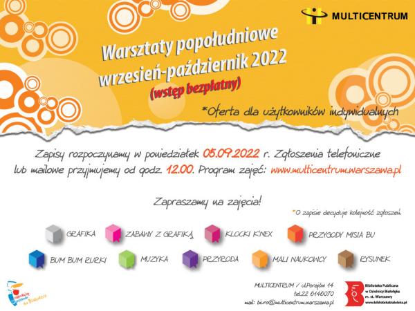 Zapisy na cykl zajęć wrzesień-październik 2022 Multicentrum na Białołęce