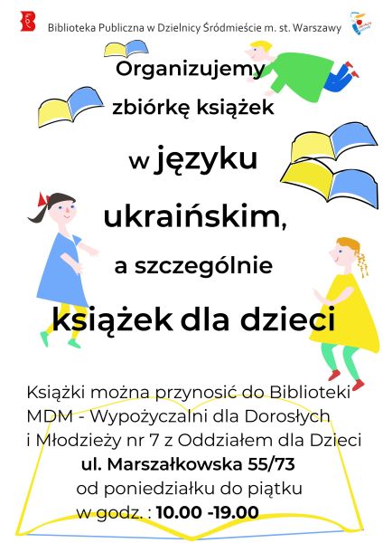Biblioteka Publiczna w Dzielnicy Śródmieście m.st. Warszawy organizuje zbiórkę książek w języku ukraińskim.